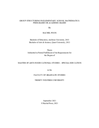 This quasi-experimental pilot study examined how structuring of groups affects academic progress in math for grade 3 students (N = 71) from School X in Surrey, British Columbia. Participants completed the Vancouver Island Numeracy Assessment (INA) as a pre-test, followed by an intervention (group structuring: academic-based and peer-based). After 16 weeks, all participants, completed the INA a second time as a post-test to determine if the structuring of groups impacted mathematical abilities.