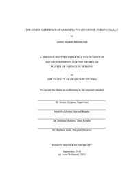 Psychomotor skills are an integral component of the knowledge, attitude, and skills of nursing education. Using van Manen's approach to phenomenology (1997; 2006), this project explored third year nursing students' "lived experiences" of learning psychomotor skills. The aim of the study was to reveal how "learning to care" might be embedded in the process of learning psychomotor skills, based on the assumption that "caring" is a present but elusive concept in the experience. Data provided some fresh understandings of nursing pedagogy. The students' memorable learning experiences revealed a learning anxiety arising from the knowledge that a person will be the recipient of their care. This anxiety is present in different ways in the skills lab and clinical setting. In addition, students' experiences revealed caring through empathy, relationships, advocacy, integrating, affecting patient outcomes, and professional behaviors. These themes resonate with Roach's theory (2002) of caring as a human mode of being. |
