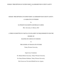 This thesis addressed whether trends could be found in studies that used questionnaires to ascertain nurses’ perceptions of supervisory leadership for safety in the context of patient safety culture. Thirty-five studies were analyzed. They used the Hospital Survey on Patient Safety Culture, Safety Attitudes Questionnaire, Safety Climate Survey, Survey on Safety in Nursing Homes, RN4CAST. One study used qualitative interviews.