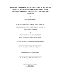 The significance of Karl Barth’s conception of petitionary prayer as divine–human correspondence in church dogmatics, iv/4 and the Christian life: cd, iv/4: lecture fragments