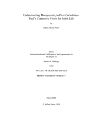 Fifteen of twenty-six occurrences of πνευματικός in the New Testament occur in 1 Corinthians. The goal of this project is to ask, Why does Paul repeatedly use the term πνευματικός in 1 Corinthians? This project will clarify the context of 1 Corinthians and why Paul used the term πνευματικός the way he did, and will evaluate that use in light of the broader meaning of πνευματικός. I will argue that this adjective always means “pertaining to the πνεῦμα,” and in Paul’s letters the particular focus is almost always on the πνεῦμα of God, that is, in New Testament terms, the Holy Spirit.