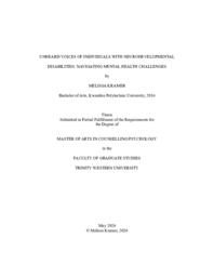 There is significant evidence that individuals with intellectual and developmental disabilities (IDD) have more traumatic life experiences than those without a disability. Research has also highlighted that people with higher levels of traumatic events throughout their lives are more likely to receive a mental health diagnosis. However, adults with IDD who experience mental health diagnoses are rarely given the same therapeutic opportunities as someone without a disability to process experiences that may impact their mental health. This project inquired about the lived experience of those with an IDD in living with mental health symptomology. The project also addresses the systemic barriers individuals with IDD face when seeking out mental health support, the importance of a strong support network, and the distinct lack of knowledge about mental health among individuals with IDD. The results highlighted the need for increased trauma-informed and plain language resources for individuals with IDD. |